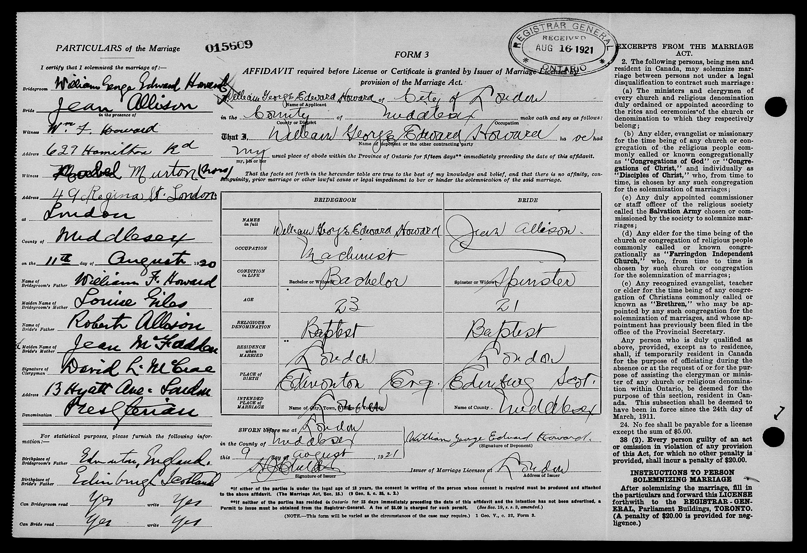Discharged with the 18th Battalion upon it return to London, Ontario on 24 May 1919.