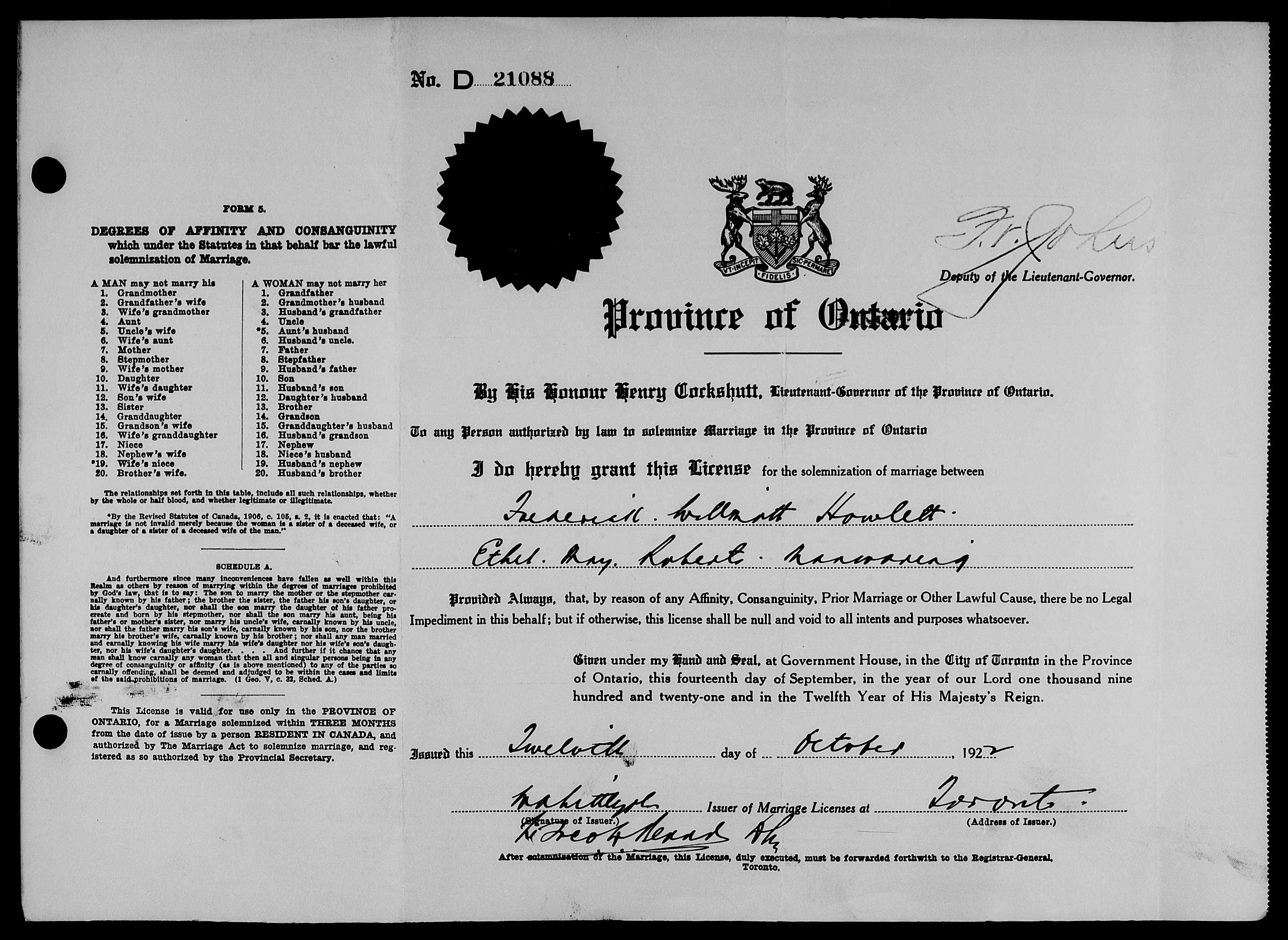 | May 19, 1921 | Updated Address | Address of Private Howlett updated to 475 Dupont Street, Toronto, Ontario. |