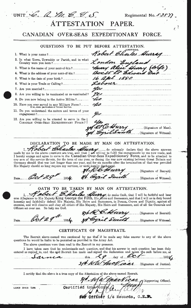 Source: 18th Battalion Nominal Roll, April 1915.