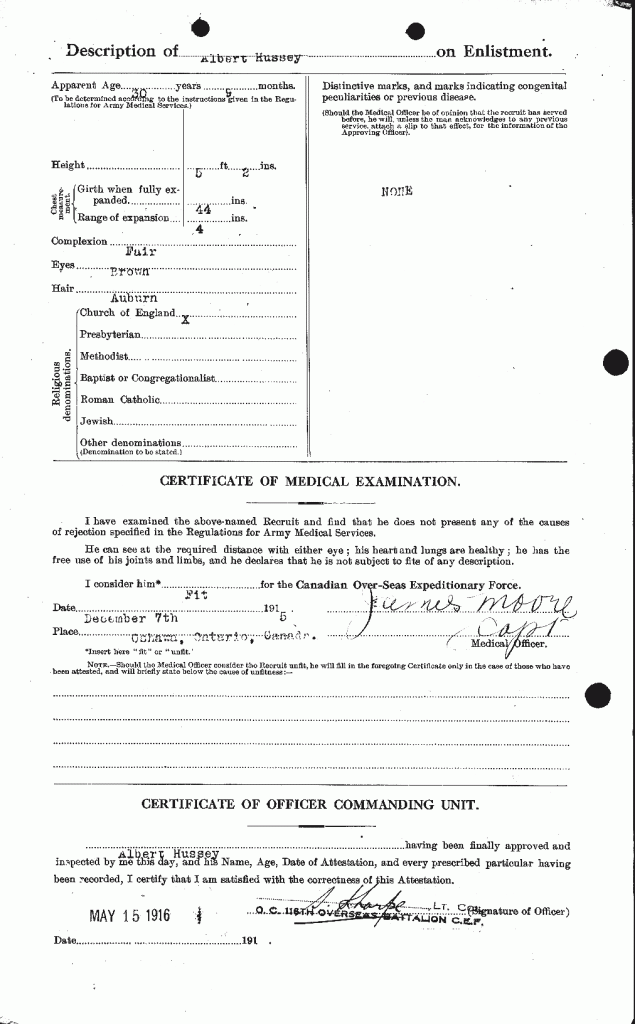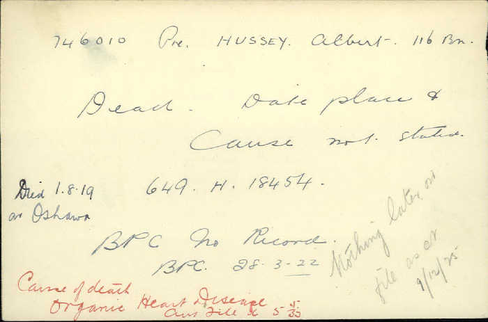 Hussey, Albert: Service no. 746010 Digitized Service Record Source: Allan Miller from 149th Battalion CEF – Lambton’s Own Facebook Group. Find-A-Grave Share this: Click to email a link to a friend (Opens in new window) Email Click to share on Facebook (Opens in new window) Facebook Click to share on X (Opens in new window) X Click to share on Reddit (Opens in new window) Reddit Click to share on LinkedIn (Opens in new window) LinkedIn Click to print (Opens in new window) Print Click to share on Tumblr (Opens in new window) Tumblr Click to share on Pocket (Opens in new window) Pocket Click to share on Pinterest (Opens in new window) Pinterest Click to share on Telegram (Opens in new window) Telegram Click to share on WhatsApp (Opens in new window) WhatsApp Like Loading...