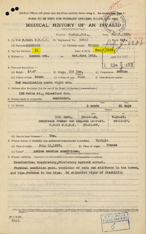 Enlisted overage. Born December 7, 1866. Declared he was born in 1873.