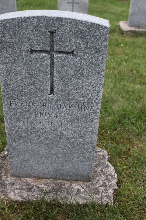 Family Search: When Frank Russell Jardine was born on 7 July 1895, in Harriston, Minto, Wellington, Ontario, Canada, his father, David F. Jardin, was 39 and his mother, Mary E. Russell, was 28. He married Annie Louise Hutchison on 16 June 1923, in York, Ontario, Canada. He lived in Huron, Ontario, Canada in 1901 and Wellington, Ontario, Canada in 1911. He registered for military service in 1915. In 1915, at the age of 20, his occupation is listed as student in Harriston, Minto, Wellington, Ontario, Canada. He died on 11 May 1971, in London, Ontario, Canada, at the age of 75, and was buried in Woodland Cemetery, London, Ontario, Canada.