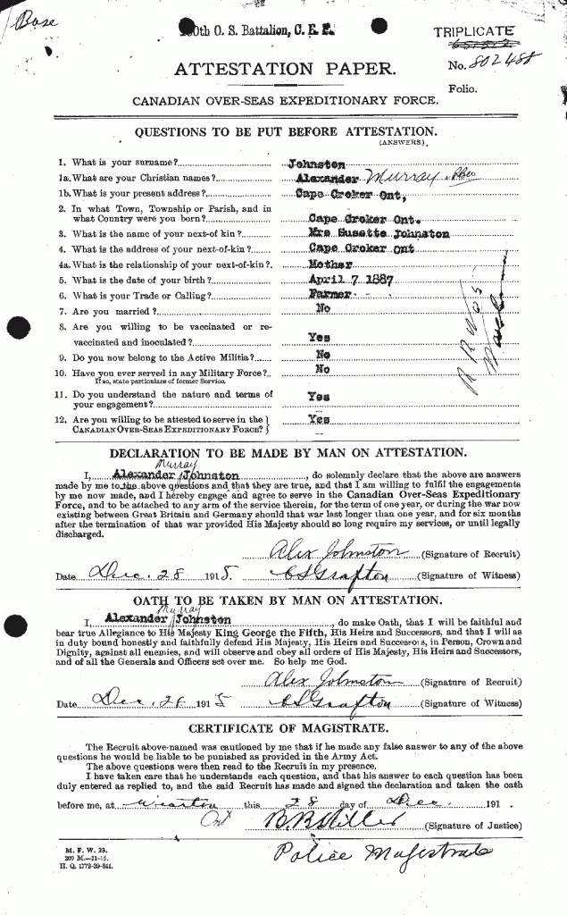 Indigenous Soldier from the “Cape Croker Reserve” now known as The Chippewas of Nawash Unceded First Nation occupy Neyaashiinigmiing Aboriginal Reserve No.27.