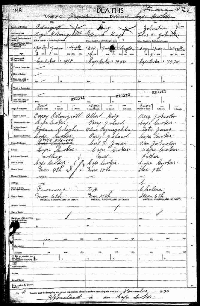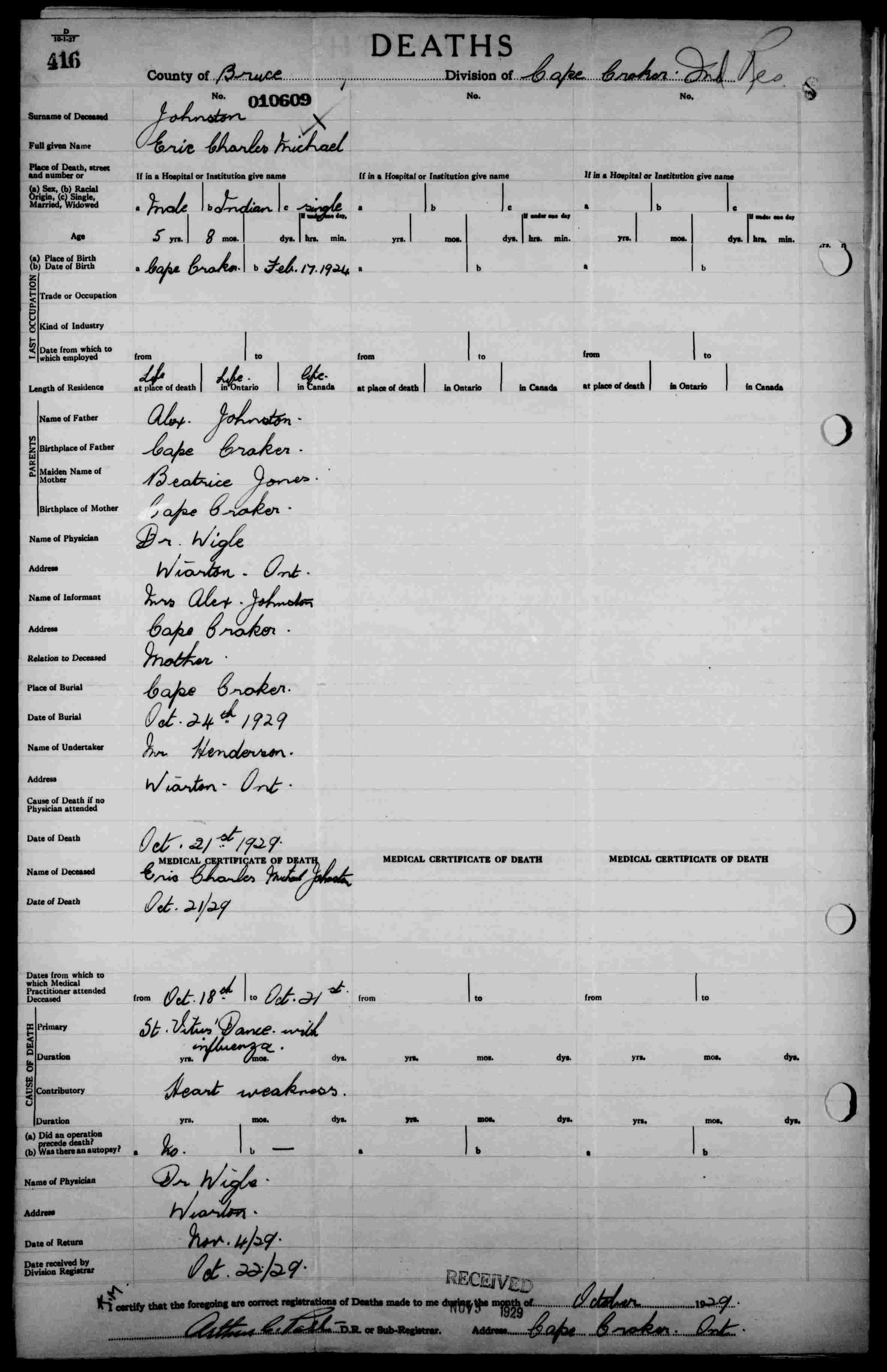 Recorded to have died on June 1971 at Wiarton, Ontario.
