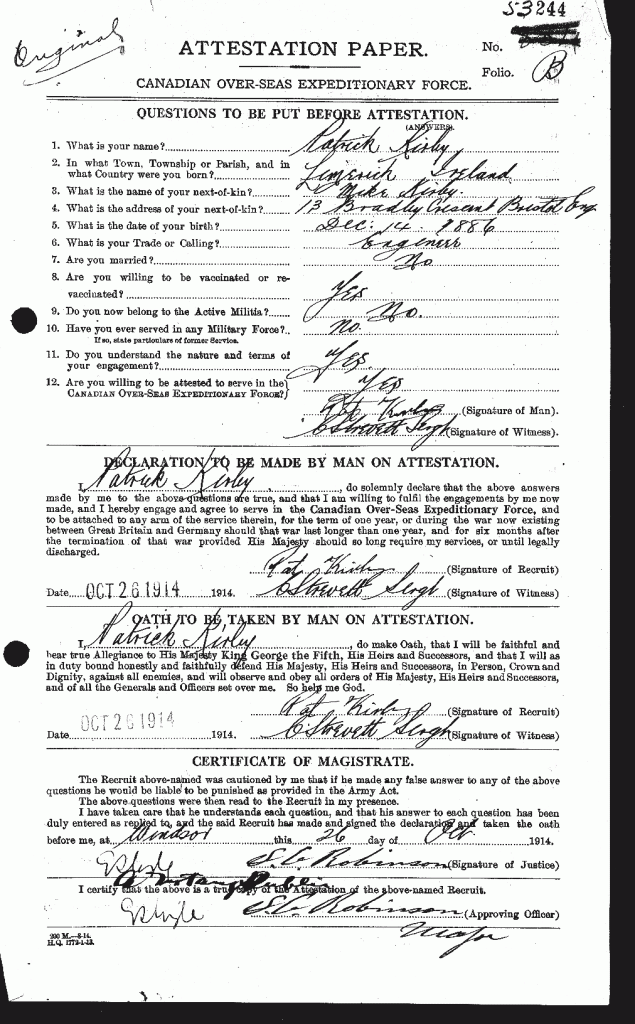 Source: 18th Battalion Nominal Roll, April 1915.