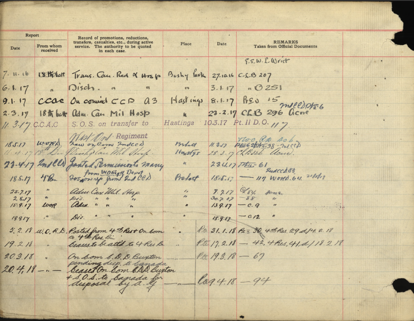 He was transferred to the 4th Canadian Reserve Battalion on 18 May 1917.