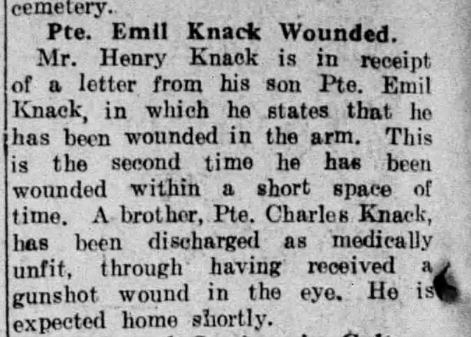 His brother, Private Charles Martin Knack, reg. no. 402121 also served with the 18th Battalion.