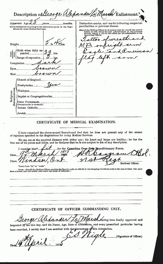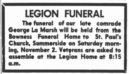 LaMarsh, George Alexander: Service no. 54330 Digitized Service Record Source: 18th Battalion Nominal Roll, April 1915. Find-A-Grave Family Search The Guardian (Prince Edward Island). November 1, 1957. Page 11. Share this: Click to email a link to a friend (Opens in new window) Email Click to share on Facebook (Opens in new window) Facebook Click to share on X (Opens in new window) X Click to share on Reddit (Opens in new window) Reddit Click to share on LinkedIn (Opens in new window) LinkedIn Click to print (Opens in new window) Print Click to share on Tumblr (Opens in new window) Tumblr Click to share on Pocket (Opens in new window) Pocket Click to share on Pinterest (Opens in new window) Pinterest Click to share on Telegram (Opens in new window) Telegram Click to share on WhatsApp (Opens in new window) WhatsApp Like Loading...
