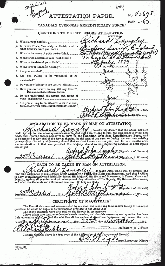 Note: It is not known which man in this photo is Private Langley.