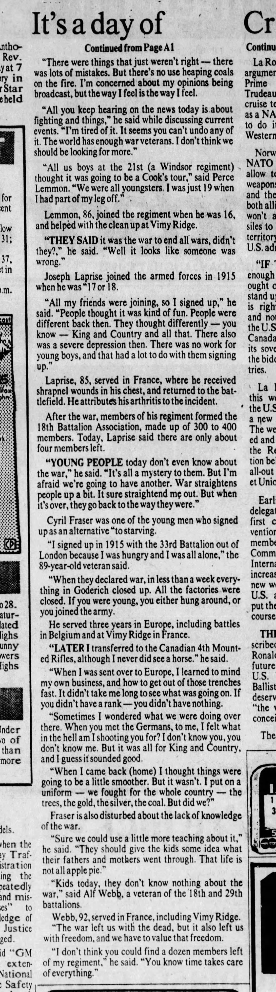 Family Search: When Private Solomon Joseph Laprise was born on 11 September 1897, in Pain Court, Kent, Ontario, Canada, his father, Joseph Laprise, was 31 and his mother, Helene Roy, was 24. He married Mabel Margaret Ellen Mchugh on 22 February 1922, in Essex, Ontario, Canada. They were the parents of at least 1 son and 2 daughters. He immigrated to Niagara Falls, Niagara, New York, United States in 1943 and lived in Chatham, Kent, Ontario, Canada in 1916 and Windsor, Sandwich Township, Essex, Ontario, Canada in 1922. He registered for military service in 1916. In 1916, at the age of 19, his occupation is listed as bookkeeper in Chatham, Kent, Ontario, Canada. He died on 10 August 1985, in Windsor, Essex, Ontario, Canada, at the age of 87, and was buried in Windsor, Essex, Ontario, Canada.