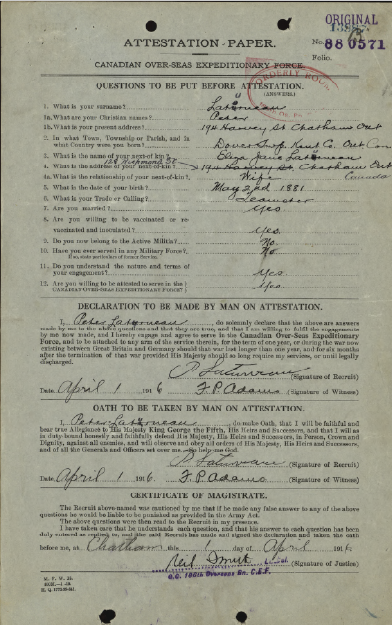 Latourneau, Peter: Service no. 880571 Digitized Service Record Source: Gathering Our Heroes Find-A-Grave Possible other spelling of last name is LATURNEAU. Private Peter Latourneau. Souce Gathering Our Heroes Share this: Click to email a link to a friend (Opens in new window) Email Click to share on Facebook (Opens in new window) Facebook Click to share on X (Opens in new window) X Click to share on Reddit (Opens in new window) Reddit Click to share on LinkedIn (Opens in new window) LinkedIn Click to print (Opens in new window) Print Click to share on Tumblr (Opens in new window) Tumblr Click to share on Pocket (Opens in new window) Pocket Click to share on Pinterest (Opens in new window) Pinterest Click to share on Telegram (Opens in new window) Telegram Click to share on WhatsApp (Opens in new window) WhatsApp Like Loading...