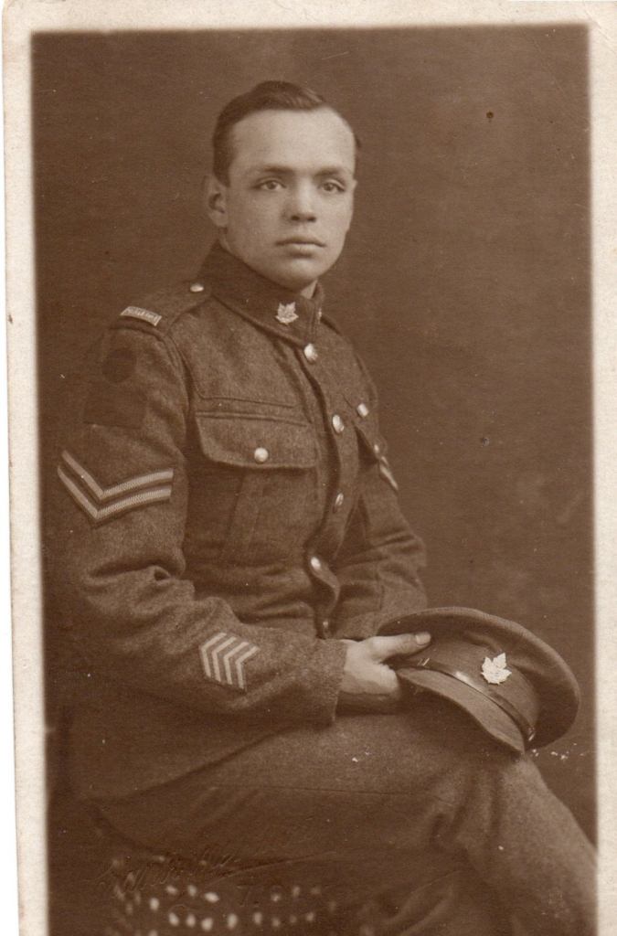 My grandfather was born Alexander John Walter Edward Laughlin (although he might have been known as John) on the 4th of November 1896 (attestation papers say 1897). He was 1st generation Canadian .His father was drowned in the Niagara River in 1901 and both his mother’s parents died in 1902.His mother put the 3 eldest children into a children’s home in Toronto. The 4th child died before she was 1 year old. She never saw her children again. When going into the home his name was recorded as John Walter Henry Laughlin and believing this to be his name went by it for a few years. After coming out of the children’s home and apprenticeship system he probably went into farm labouring before joining the 36th battalion at Niagara on the Lake on 10th June 1915. After joining the 36th on the 10th June 1915.he sailed with them on the 19th and arrived in the UK on the 28th June 1915. On arrival the 36th became a reserve battalion and John was transferred to the 18th joining them in the field at the end of November 1915.Whenever he was in France/Flanders he was with the 18th. He was wounded 3 times (once at the Somme) suffered trench foot (Passchendaele) and myalgia. He fell foul of military discipline while at Witley 21 days detention for being late for morning parade and refusing to obey an order and while waiting to join 18th in the field, loss of pay for gambling. He was on strength of battalion when Nov./Dec 1918 the 18th marched from near Mons to the Rhine to become part of the Army of Occupation.c4th April 1919 he was waiting to go back to UK. He sailed from Liverpool on the 14th May 1919 and was demobilized at London, Ontario on the 24th May 1919. He finished the war as a corporal. While in the UK John met the Durrant family and on his return to Canada he kept in contact. After a time in Canada he made his return to the UK working his passage on a cattle boat. He went to stay with the Durrants at their home in Burpham, Surrey. The parents having lost their 2 eldest sons to the war treated John like a son. On 1st August 1925 John married Agatha Durrant. My grandparents lived their married life on Whitmoor Common, Worplesdon, Surrey. My grandmother died in 1969 and my grandfather continued living on the common with my uncle and his family. Eventually he moved to Wales and lived with his daughter and son-in-law. He died in Wales on 10th November 1985 aged 89. He was cremated and his ashes interred at Guildford Crematorium. Biography by his grandson, Martin Laughlin.