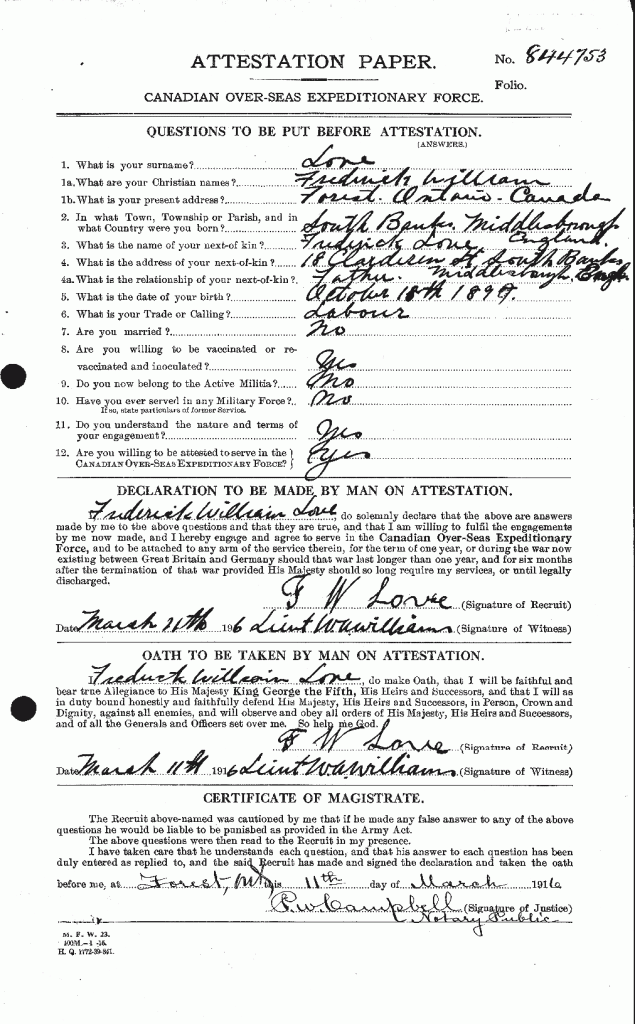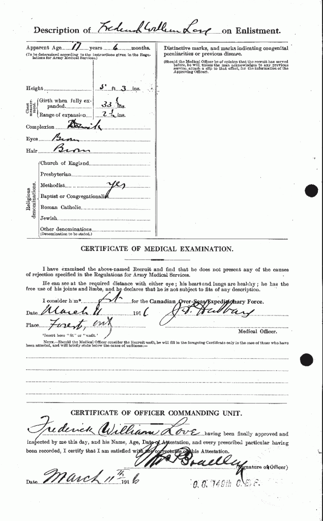 Source: Per message from Allan Miller via Facebook. This soldier originally attested to the 149th (The Lambtons) Overseas Battalion.