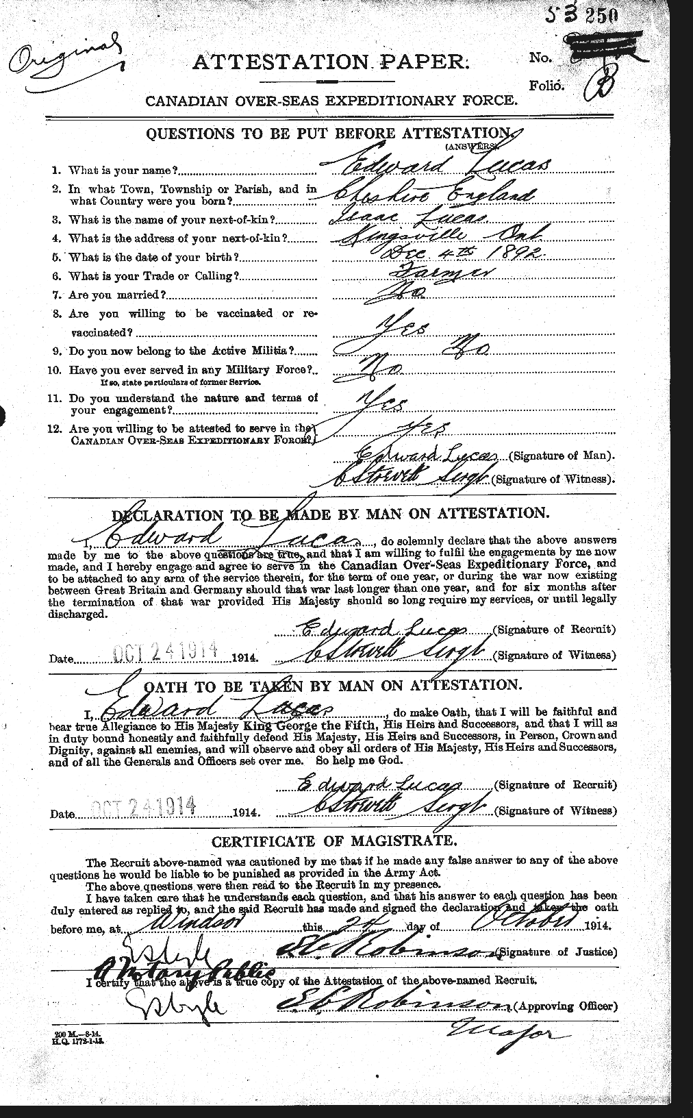 Source: Per service record Oudot, reg. no. 53149.
