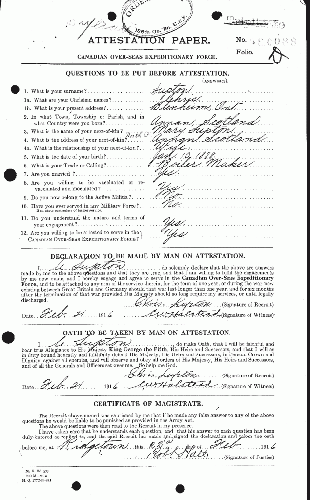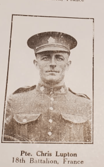 Source: In Khaki Blenheim and Vicinity. Published by the Blenheim News-Tribune Blenheim Ont. Canada. December 1917. Snip for 18th Battalion Facebook Group Contribution by member.