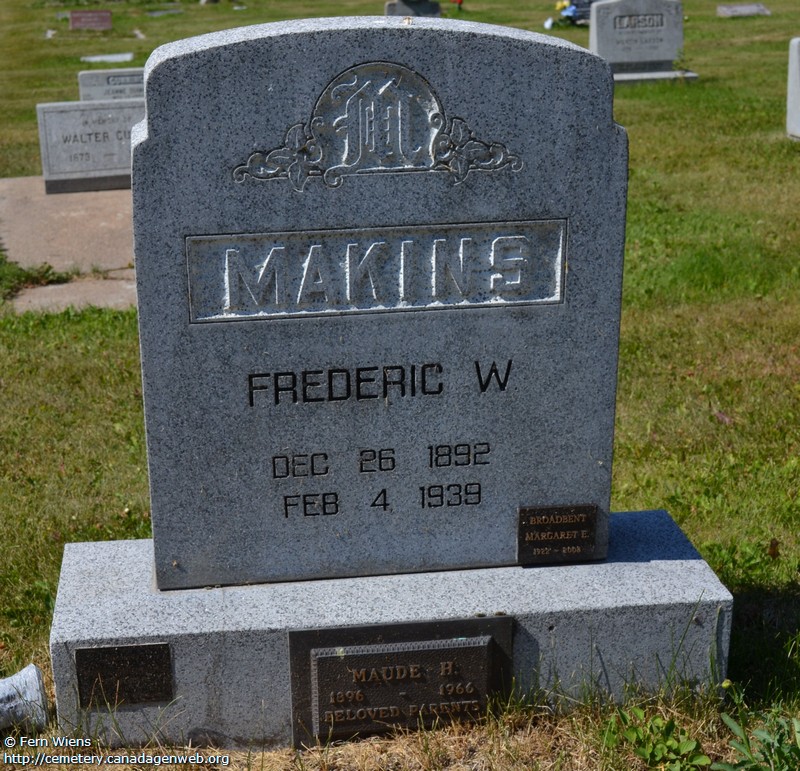 Makins, Frederic Waites: Service no. 880436 Digitized Service Record Source: Gathering Our Heroes Find-A-Grave Private Makins. Source: Gathering Our Heroes Headstone at Fraser Lake Cemetery.Frederic Waite MAKINS1892-1939Fraser Lake CemeteryFraser Lake,Bulkley-Nechako Regional District, BCPhotos courtesy of Fern Wiens [2014] Share this: Click to email a link to a friend (Opens in new window) Email Click to share on Facebook (Opens in new window) Facebook Click to share on X (Opens in new window) X Click to share on Reddit (Opens in new window) Reddit Click to share on LinkedIn (Opens in new window) LinkedIn Click to print (Opens in new window) Print Click to share on Tumblr (Opens in new window) Tumblr Click to share on Pocket (Opens in new window) Pocket Click to share on Pinterest (Opens in new window) Pinterest Click to share on Telegram (Opens in new window) Telegram Click to share on WhatsApp (Opens in new window) WhatsApp Like Loading...