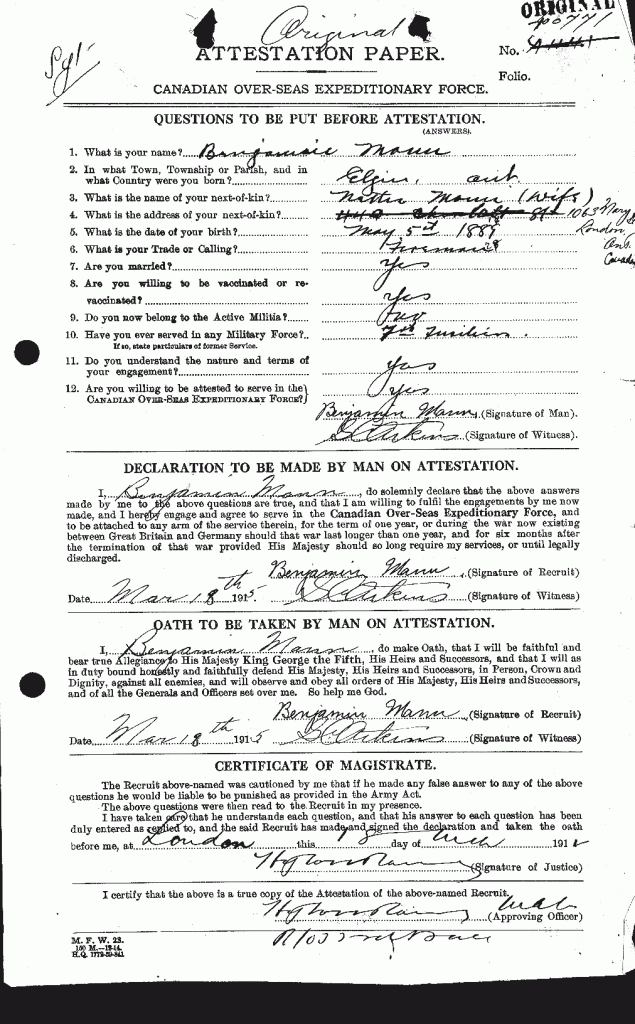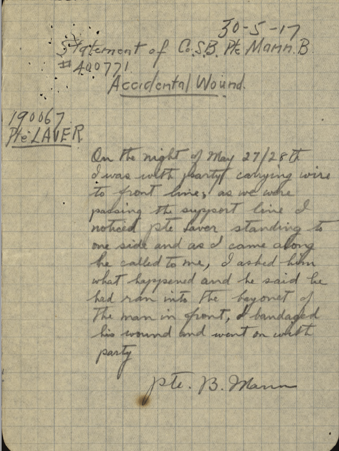 Witness to accidental wounding of Private Bruce Laver, 190067.
