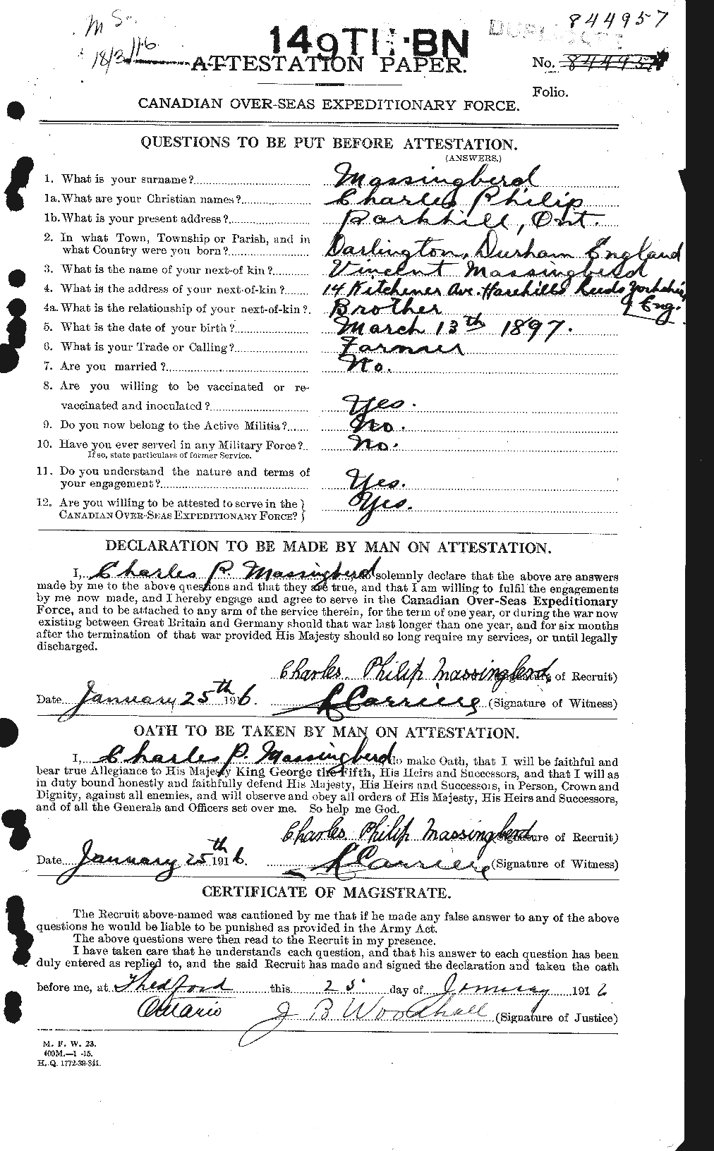 Massingberd, Charles Philip: Service no. 844957 Digitized Service Record Source: Via 18th Battalion Facebook Group posting by Sharon Munro. BHC. Find-A-Grave British Home Child Share this: Click to email a link to a friend (Opens in new window) Email Click to share on Facebook (Opens in new window) Facebook Click to share on X (Opens in new window) X Click to share on Reddit (Opens in new window) Reddit Click to share on LinkedIn (Opens in new window) LinkedIn Click to print (Opens in new window) Print Click to share on Tumblr (Opens in new window) Tumblr Click to share on Pocket (Opens in new window) Pocket Click to share on Pinterest (Opens in new window) Pinterest Click to share on Telegram (Opens in new window) Telegram Click to share on WhatsApp (Opens in new window) WhatsApp Like Loading...