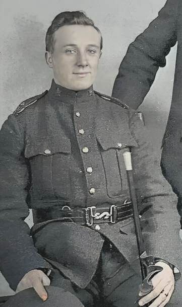 He was a member of “B” Company, and served with the 18th Battalion he was wounded 10 April 1916 with a bullet wound to the right thigh.