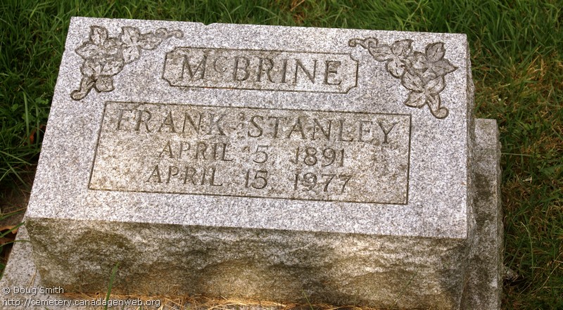 Frank was born April 5, 1891 in Berlin, Ontario. Before enlisting on October 16, 1914 he was a member of the the Berlin Regiment. He served in the 18th Battalion, 4th Field Co. Canadian Expeditionary Force, the 123rd Battalion, and the 9th Canadian Engineers. His father, listed as his next of kin, was Lewis McBrine of 87 Ahrens Street, Berlin, Ontario. His occupation was clerk.