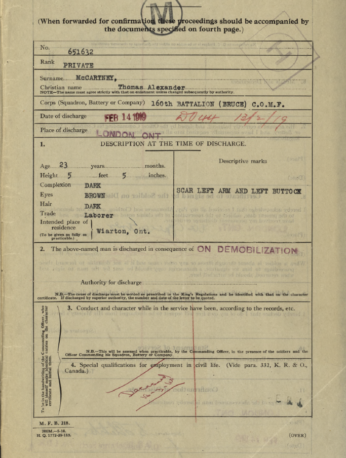 Source: Per research by 160th Battalion Facebook Group. Confirmed served with 18th Battalion..
