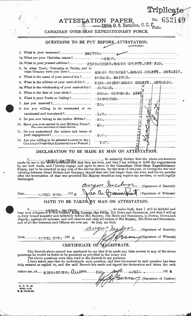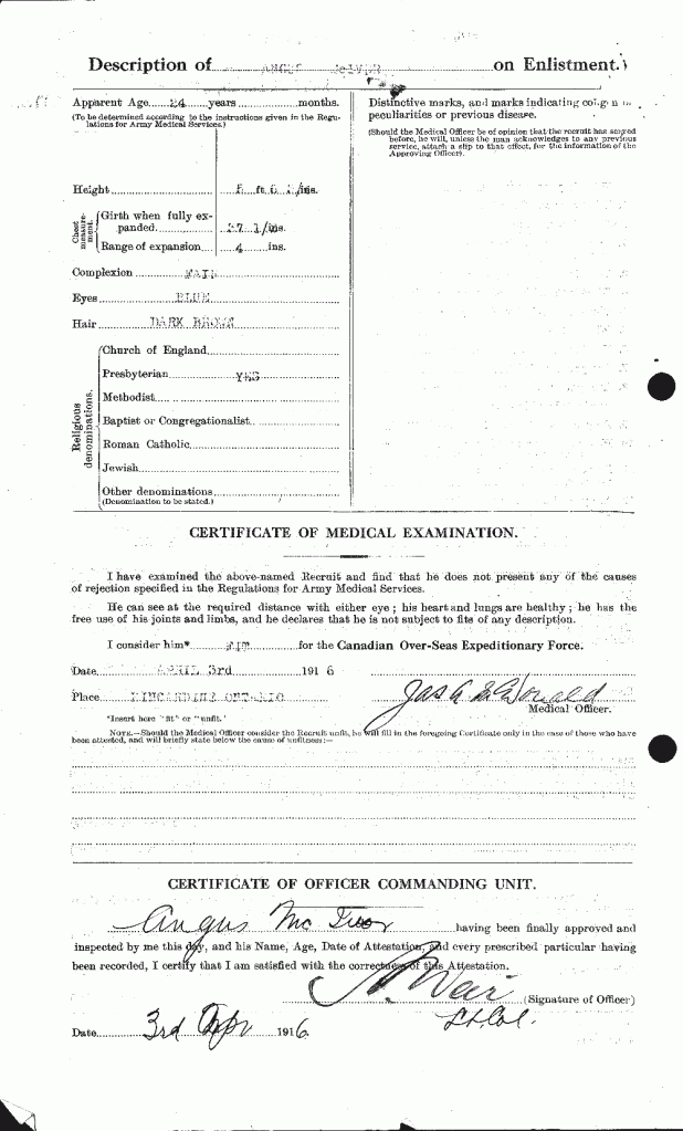 Source: Originally a member of the 160th Battalion. Transferred to 18th. Per records by Kent Kramer.