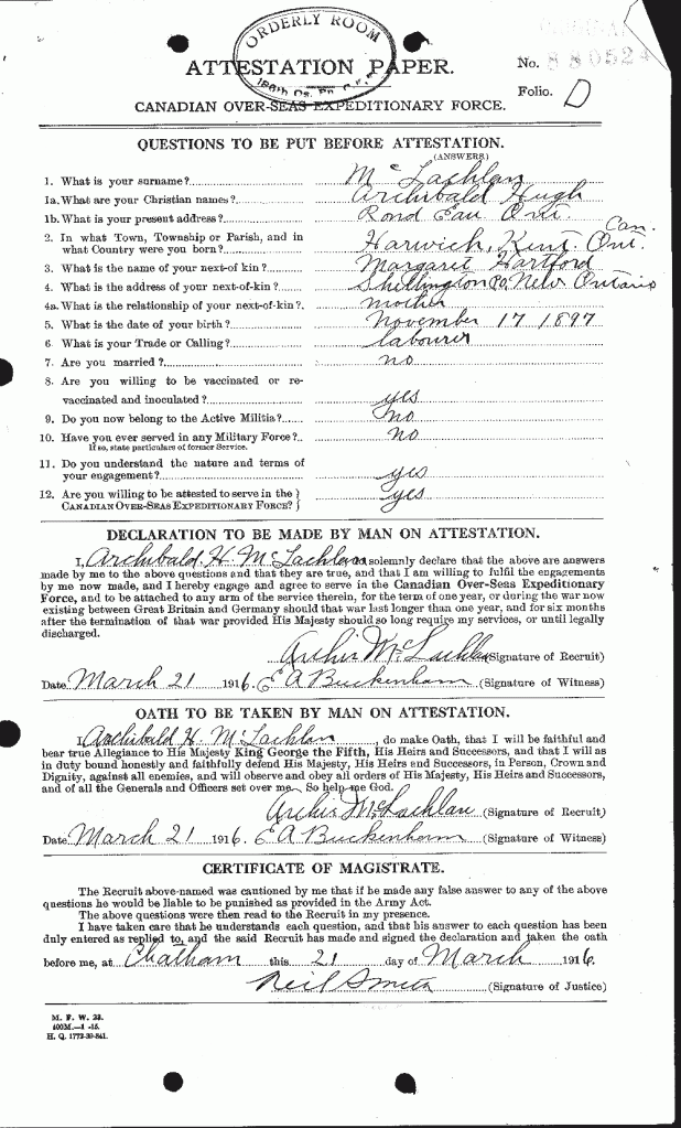 Source: In Khaki Blenheim and Vicinity. Published by the Blenheim News-Tribune Blenheim Ont. Canada. December 1917. Snip for 18th Battalion Facebook Group Contribution by member.
