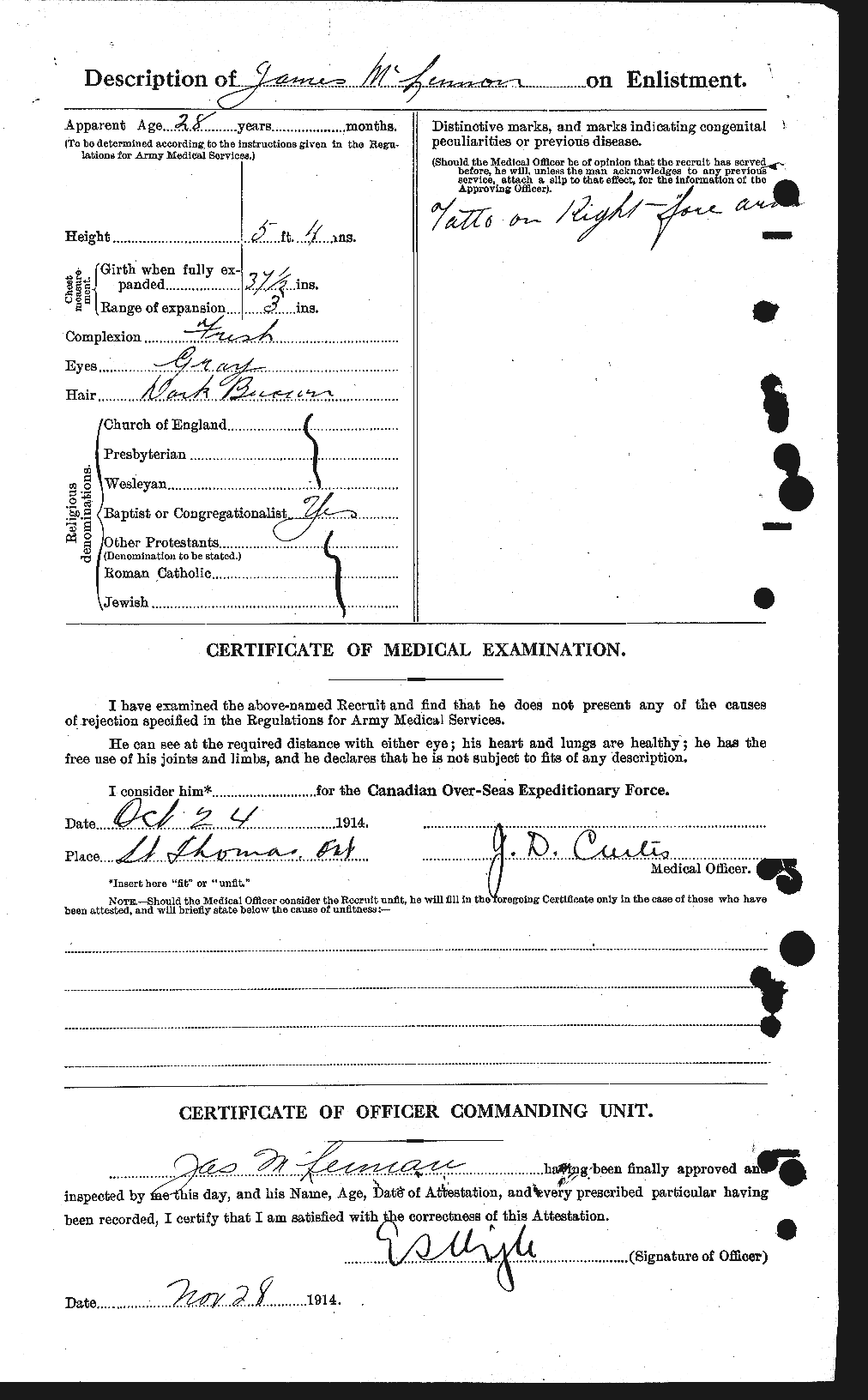 Source: Possible soldier in 18th Battalion Association Memory relating a “Jimmy McLellan”. Eliminated due to details of this soldier’s service do not match details in “Memory”.