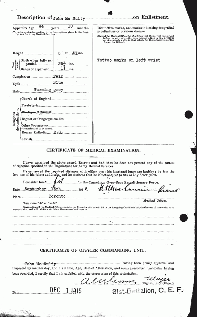 Served with his son, Private Frank McNulty, reg. no. 164234.
