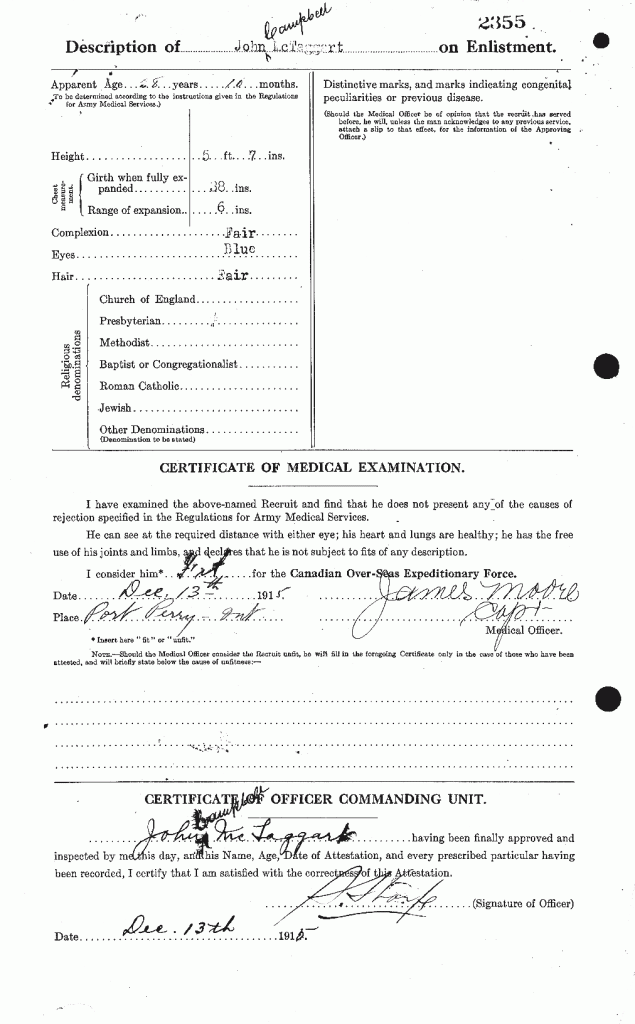 | Wound type/Death particuolars | GSW Head at Vimy Ridge (shrapnel wound) was in a coma |
