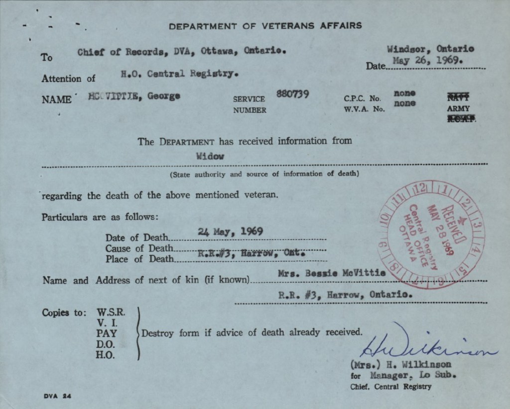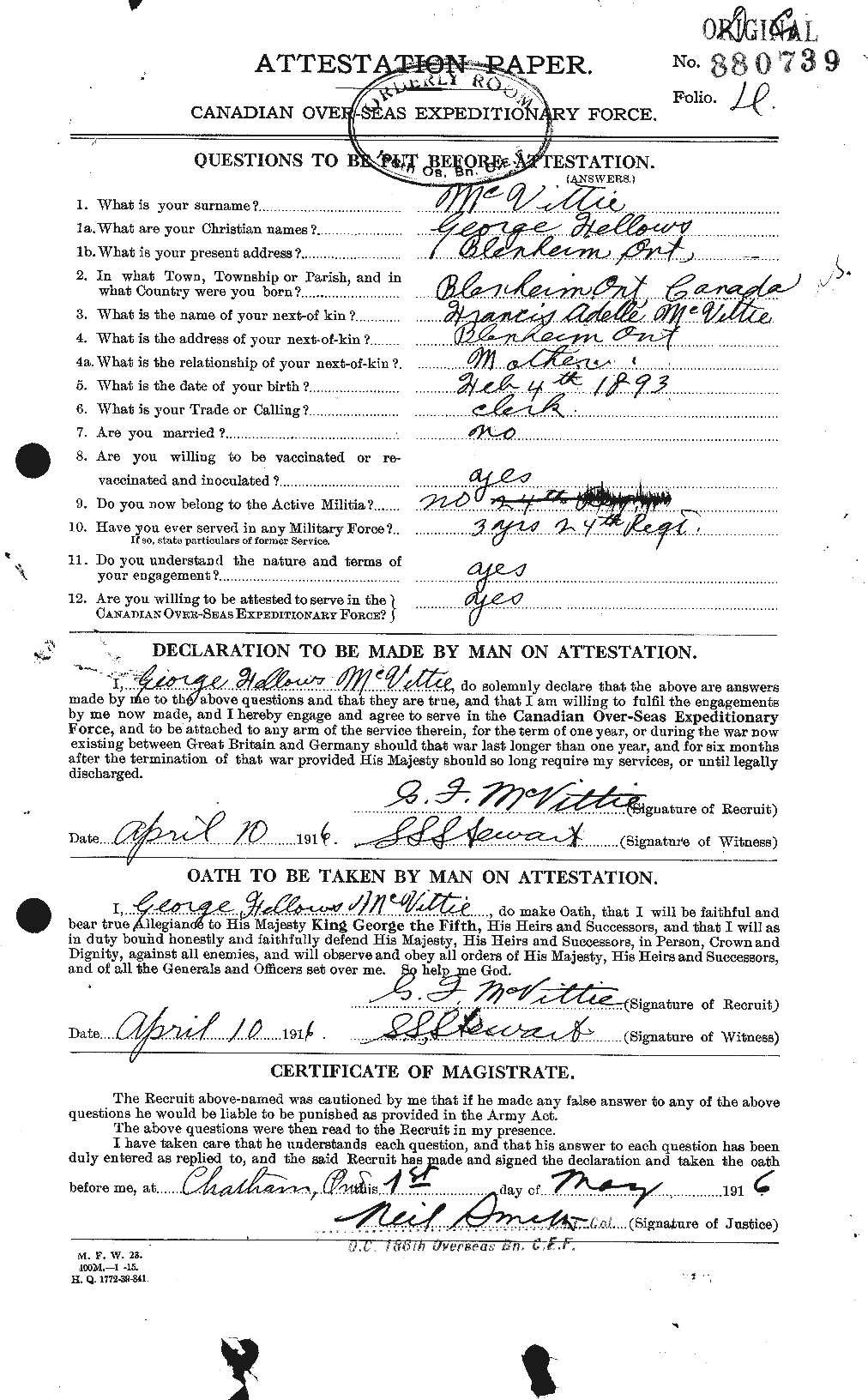 McVittie, George Fellows: Service no. 880739 Digitized Service Record Source: Per post by Allan Miller at 18th Battalion Facebook Group. Find-A-Grave Gathering Our Heroes Share this: Click to email a link to a friend (Opens in new window) Email Click to share on Facebook (Opens in new window) Facebook Click to share on X (Opens in new window) X Click to share on Reddit (Opens in new window) Reddit Click to share on LinkedIn (Opens in new window) LinkedIn Click to print (Opens in new window) Print Click to share on Tumblr (Opens in new window) Tumblr Click to share on Pocket (Opens in new window) Pocket Click to share on Pinterest (Opens in new window) Pinterest Click to share on Telegram (Opens in new window) Telegram Click to share on WhatsApp (Opens in new window) WhatsApp Like Loading...