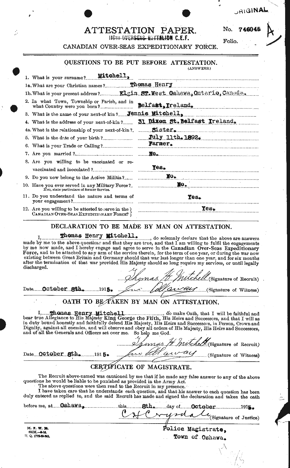 Source: Per service records of William George Burner, reg. no. 746186.