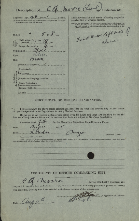 Note that this officer joined the 18th Battalion as a supernumerary and served between November 1914 to February 1915, when he was discharged from the service. He re-enlisted and served with the 26th Battalion and earned the Military Cross.