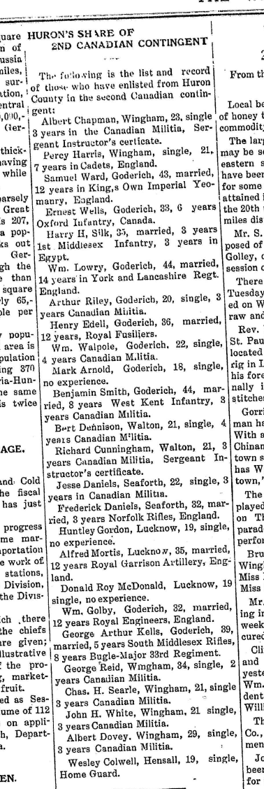 Source: The Wingham Advance. May 22, 1919. Page 5.