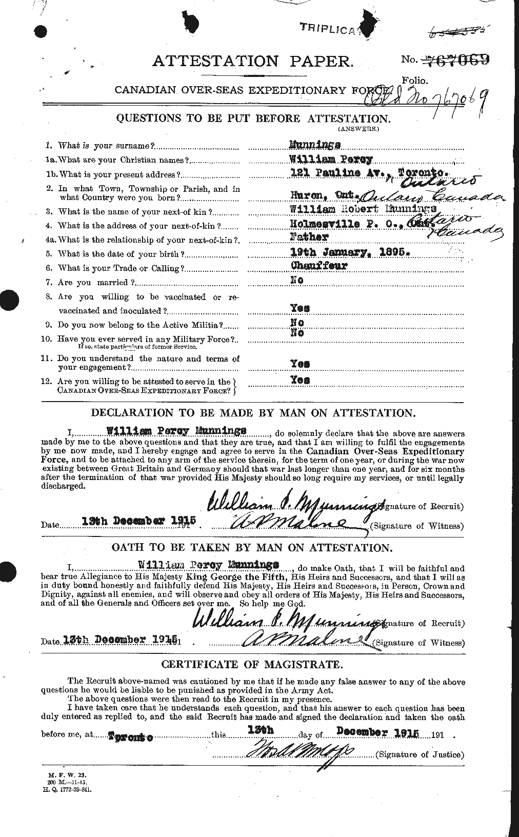Source: Service record of Vincent Bowen, reg. no. 53998 record of promotion.