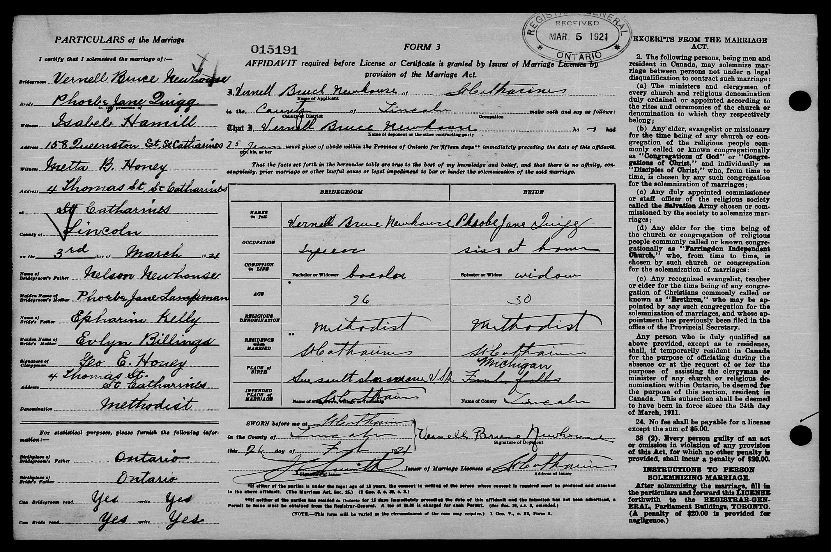 Family Search: When Private Vernell Bruce Newhouse was born on 6 October 1894, in Sault Sainte Marie, Chippewa, Michigan, United States, his father, Nelson Newhouse, was 38 and his mother, Phoebe Jane Lampman, was 37. He married Phoebe Jane Kelley on 3 March 1921, in St. Catharines, Niagara, Ontario, Canada. He lived in Berkley, Berkley, Oakland, Michigan, United States in 1940 and Ferndale, Oakland, Michigan, United States in 1950. He registered for military service in 1916. In 1950, at the age of 56, his occupation is listed as experimental department, Fischer Autobody in Flint, Genesee, Michigan, United States. He died on 15 February 1962, in Volusia, Florida, United States, at the age of 67, and was buried in Berkley, Oakland, Michigan, United States