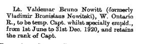 This man would change his name to Valdemar Bruno Nowitt per The London Gazette. Volume 32236. Page 1524. February 22, 1921.