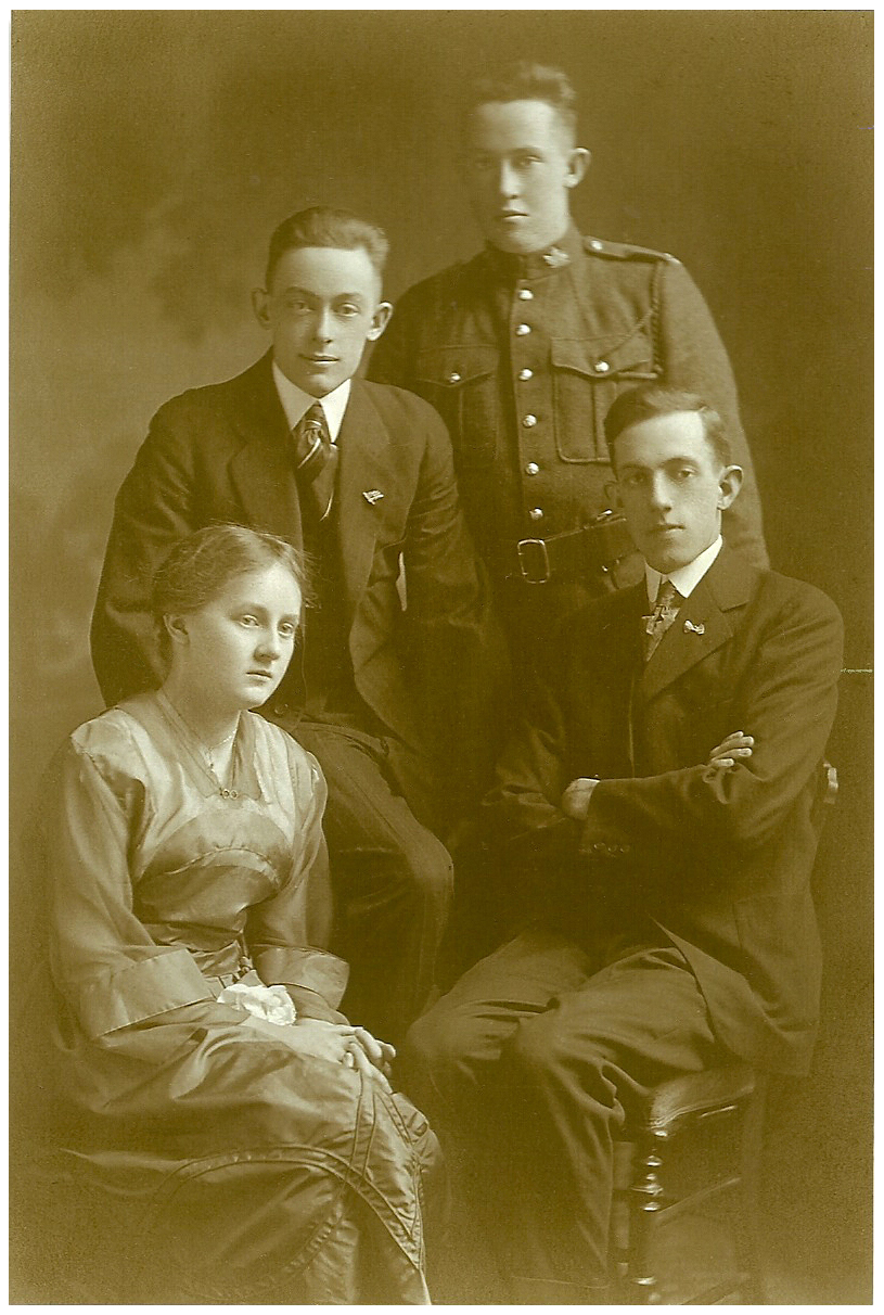 “Trade listed as Farmer. DOB 29-10-95, born Aylmer, Ontario. 5 foot 9 3/4 inches. Blue eyes, red hair. Presbyterian. NOK Elsie Evans, friend. Enlisted Guelph 3-1-16 (age 20 years 2 months). On 153rd Battalion Nominal Roll 5-2-16, no transfer noted. On 153rd Battalion Rolls as published Guelph Mercury 10-6-16 and 1-12-16. Embarked with 153rd Halifax N.S. SS Olympic 29-4-17. Taken on Strength 18th Battalion 8-4-18. Wounded gassed 7-9-18. Globe & Mail Canadian Casualty list 10-9-18 under ‘Infantry reports “gassed.” Survived the War, returned to Canada aboard SS Lapland arrived Halifax, N.S. 5-3-19. Demobilized London 25-5-19. Ontario Marriage Registry (021832) married 26-8-25 to Lucy Mary Shaefer at Guelph. Died 1964, buried Pine Hills Cemetery, Toronto. Headstone photo courtesy, B. Gilbert.