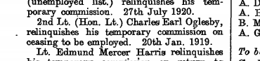 Oglesby, Charles Earl: Lieutenant Digitized Service Record Source: Duty Nobly Done, page 246; taken on strength to Battalion. London Gazette issue 32332, page 4100. Possible reference to soldier. Context unknown. Share this: Click to email a link to a friend (Opens in new window) Email Click to share on Facebook (Opens in new window) Facebook Click to share on X (Opens in new window) X Click to share on Reddit (Opens in new window) Reddit Click to share on LinkedIn (Opens in new window) LinkedIn Click to print (Opens in new window) Print Click to share on Tumblr (Opens in new window) Tumblr Click to share on Pocket (Opens in new window) Pocket Click to share on Pinterest (Opens in new window) Pinterest Click to share on Telegram (Opens in new window) Telegram Click to share on WhatsApp (Opens in new window) WhatsApp Like Loading...