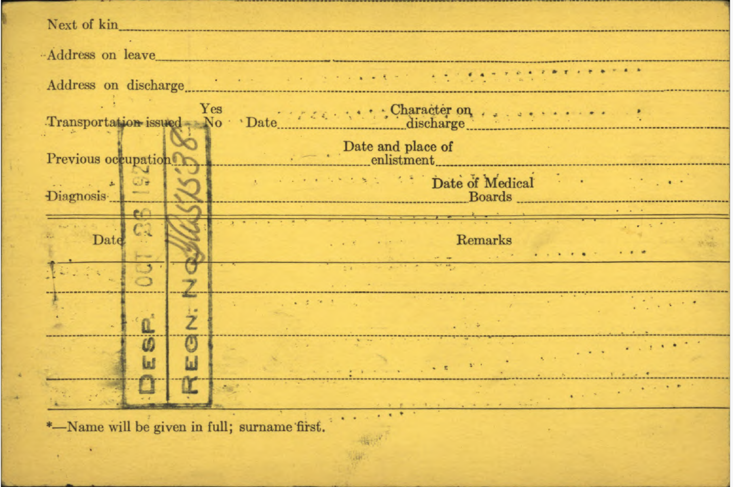 He arrived in England on 16 February 1918 aboard the SS Grampian and was transferred for active combat duty on 21 August 1918 and arrived “in the field” on 31 August 1918.