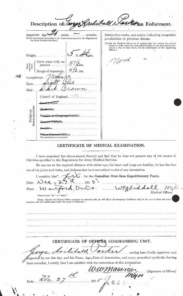 This man enlisted with the 149th Battalion on 24 December 1915 at Watford, Ontario.