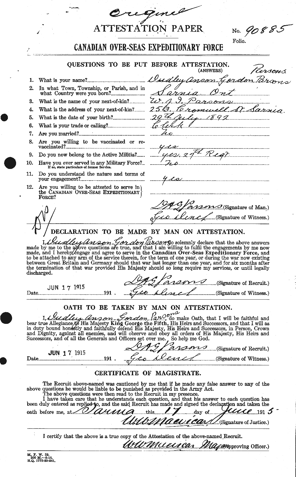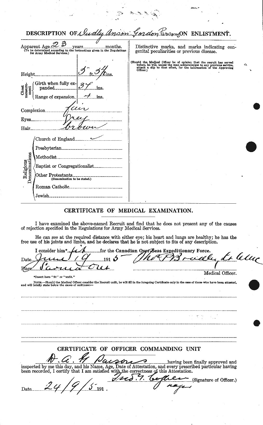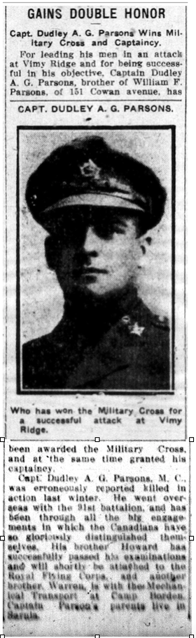 Lt. Dudley Anson Gordon Parsons, Can. Infy.
