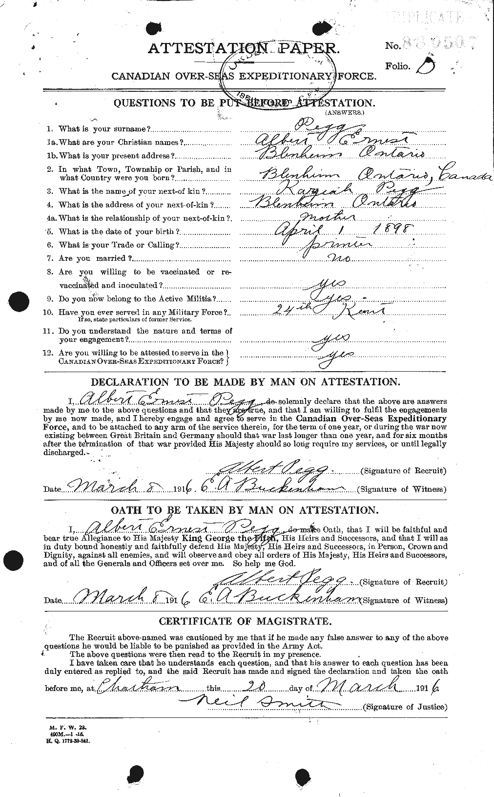 Source: Brother to Peter Pegg of Blenheim, Ontario. See link for article.