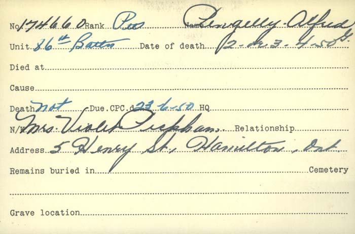 Pengelly, Alfred George: Service no. 174660 Digitized Service Record Source: Record of promotion of Lance-Corporal Rowbotham, Thomas Ernest: Service no. 160382. Find-A-Grave Share this: Click to email a link to a friend (Opens in new window) Email Click to share on Facebook (Opens in new window) Facebook Click to share on X (Opens in new window) X Click to share on Reddit (Opens in new window) Reddit Click to share on LinkedIn (Opens in new window) LinkedIn Click to print (Opens in new window) Print Click to share on Tumblr (Opens in new window) Tumblr Click to share on Pocket (Opens in new window) Pocket Click to share on Pinterest (Opens in new window) Pinterest Click to share on Telegram (Opens in new window) Telegram Click to share on WhatsApp (Opens in new window) WhatsApp Like Loading...