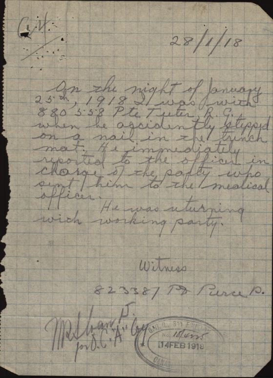 Source: Made witness statement in service record of Pte. R.G. Teeter, reg. no. 880558 re. accident.