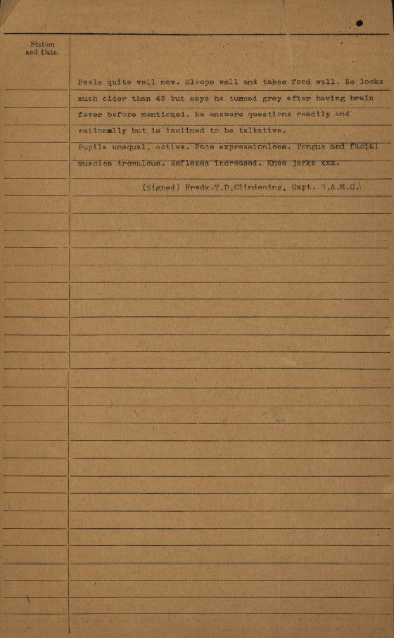 His pockets are filled with bits and scraps of paper. Among them is the instruction as to what to do with his gas helmet. It read: