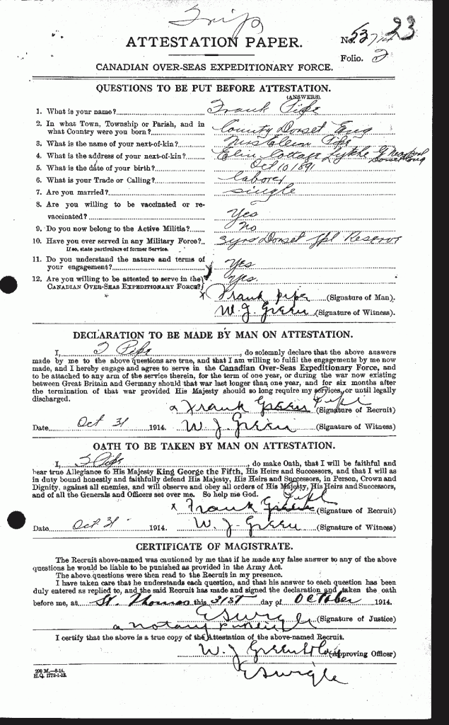 Private Frank Pipe, reg. no. 53714.