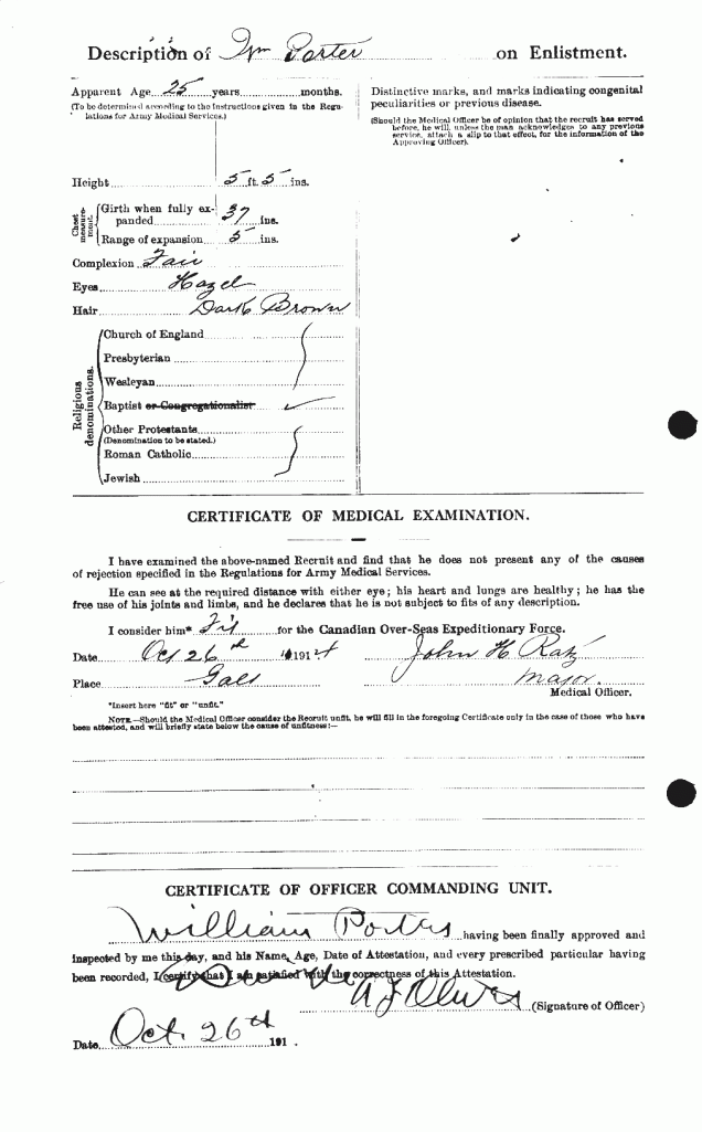 Source: During Veterans Death Card search for Captain W.A.S. Porter.