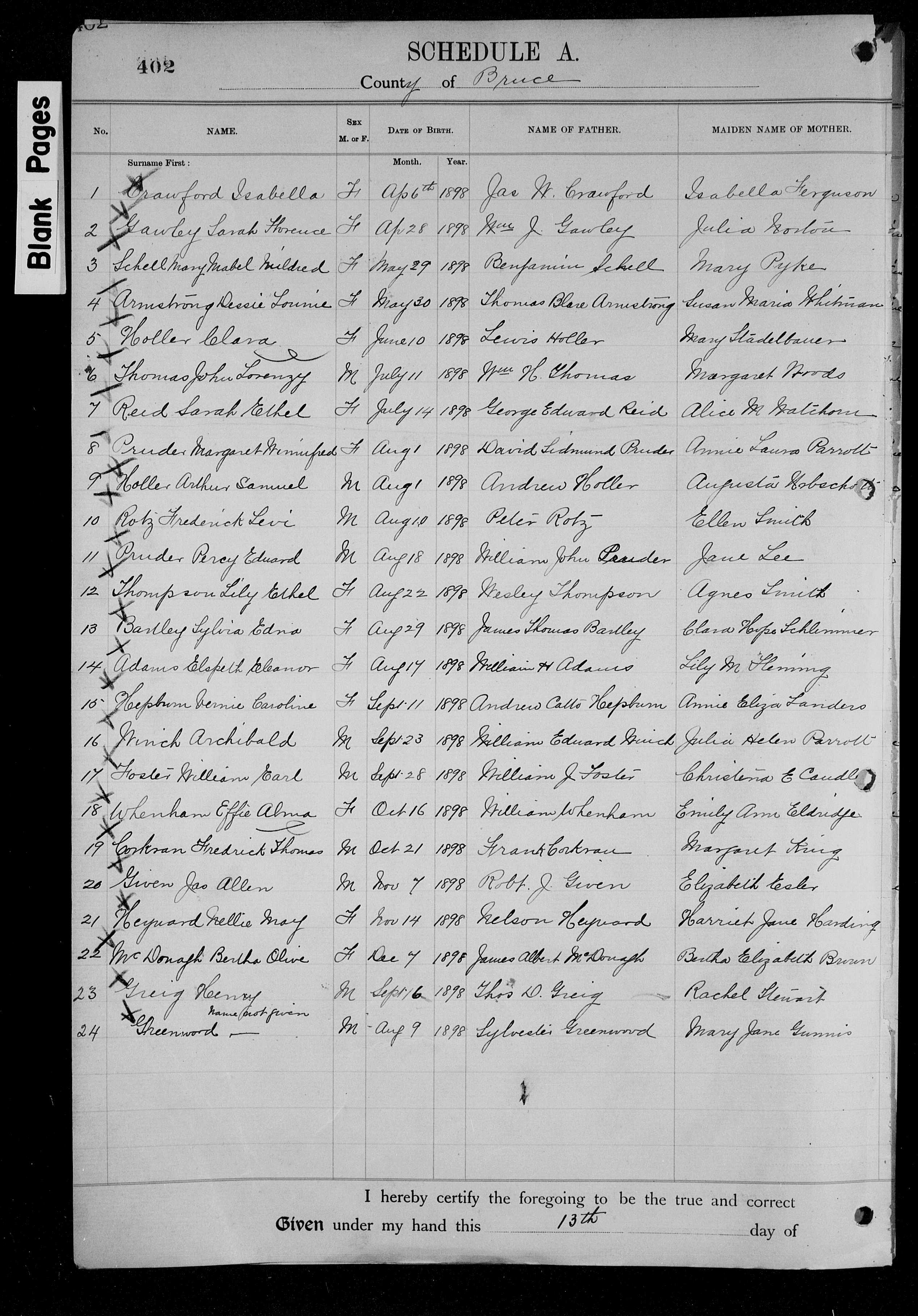 Family Search: When Private William John Pruder was born on 23 October 1896, in Albemarle Township, Bruce, Ontario, Canada, his father, William M. Pruder, was 21 and his mother, Jennie Lee, was 16. He married Mary Rosetta Carmichael on 28 October 1919, in Owen Sound, Grey, Ontario, Canada. They were the parents of at least 1 son and 1 daughter. He lived in Toronto, York, Ontario, Canada in 1926. He registered for military service in 1914. In 1914, at the age of 18, his occupation is listed as farmer in Wiarton, Bruce, Ontario, Canada. He died on 12 May 1958, in Wiarton, Bruce, Ontario, Canada, at the age of 61, and was buried in Edgehill Cemetery, Wiarton, Bruce, Ontario, Canada.