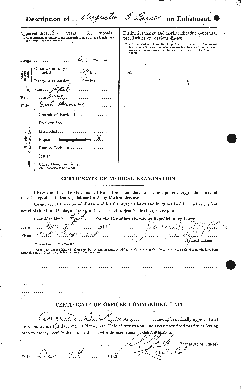 Enlisted as Augustus George Raines.